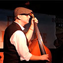 Stuwen, duwen, trekken. Alles in dienst van de groove. Christiaan legt met zijn (contra)bas het fundament onder de muziek.