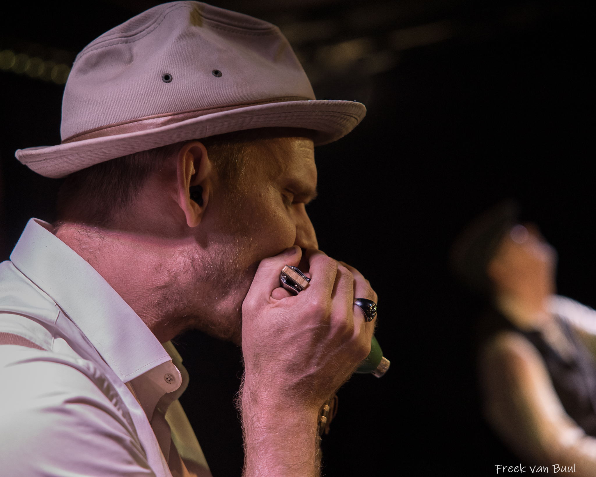 Pupil van de Amerikaanse harmonicalegende David Barrett. Spelend op een 4x10" Marble Harpmaster ademt hij met zijn harmonica letterlijk leven in de muziek.